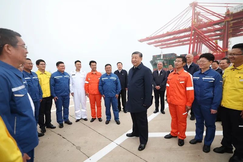 22日下午,習(xí)近平首先來到日照港考察。日照港是重要的能源和大宗原材料中轉(zhuǎn)基地,近年來推進(jìn)智慧化、綠色化建設(shè),建成順岸開放式全自動化集裝箱碼頭。習(xí)近平聽取山東省港口發(fā)展建設(shè)和日照港規(guī)劃布局等情況介紹,并察看全自動化集裝箱碼頭作業(yè)場景。他說,日照港是改革開放后新建的港口,近年來推進(jìn)科技創(chuàng)新,將傳統(tǒng)港口改造升級為現(xiàn)代化港口,不僅貨物吞吐量躋身全國前列,還積累了通過傳統(tǒng)產(chǎn)業(yè)改造升級發(fā)展新質(zhì)生產(chǎn)力的經(jīng)驗,值得肯定。習(xí)近平親切慰問港口科技工作者、運營人員、航運人員,希望大家再接再厲、繼續(xù)奮斗,推動日照港管理運營更上一層樓。