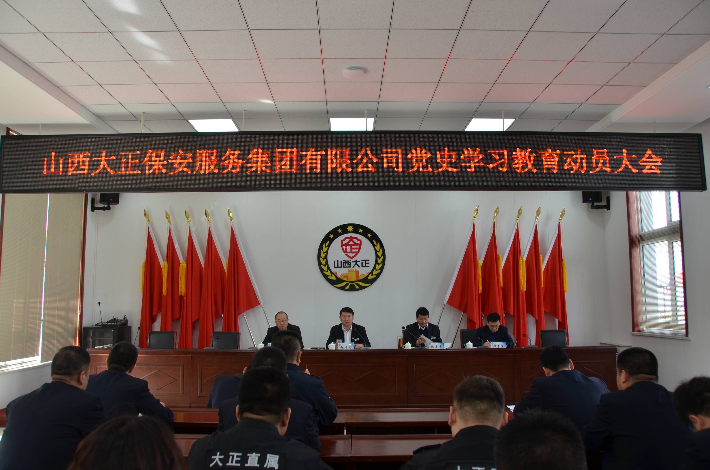 3月29日上午,山西大正保安服務(wù)有限公司召開黨史學(xué)習(xí)教育動員大會,深入學(xué)習(xí)貫徹習(xí)近平總書記在全國黨史學(xué)習(xí)教育動員大會上的重要講話精神,認(rèn)真落實(shí)市委、市國資委黨委動員大會精神,結(jié)合公司實(shí)際對開展黨史學(xué)習(xí)教育進(jìn)行全面動員部署。公司在家的領(lǐng)導(dǎo)班子成員、中層副職以上管理人員、各基層黨組織負(fù)責(zé)人及黨員代表參會,公司黨委副書記、總經(jīng)理趙培宏主持會議。