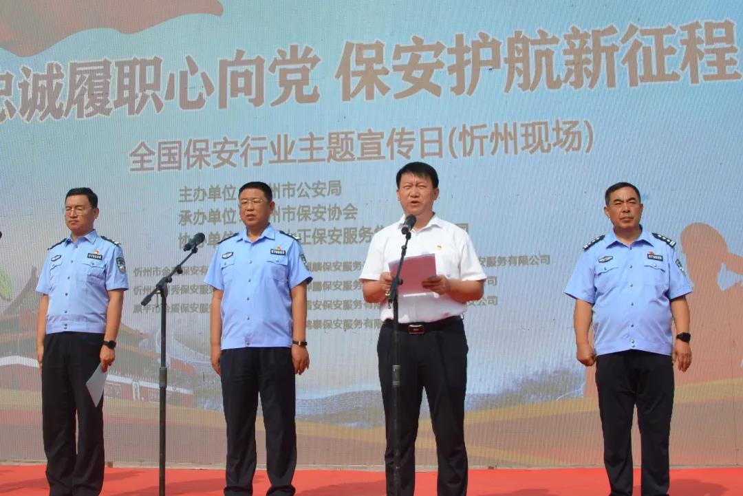 山西大正保安服務(wù)集團(tuán)有限公司黨委副書記、總經(jīng)理、市保安協(xié)會(huì)常務(wù)副會(huì)長(zhǎng)趙培宏代表忻州市保安協(xié)會(huì)向全市廣大保安員表示親切的慰問(wèn)和誠(chéng)摯的謝意。保安服務(wù)業(yè)是伴隨著改革開(kāi)放和市場(chǎng)經(jīng)濟(jì)發(fā)展而興起的新興服務(wù)產(chǎn)業(yè)。而7月24日這個(gè)日子代表廣大保安員每周7天24小時(shí)全天候提供安全保障服務(wù)。大家夜以繼日奮戰(zhàn)在社會(huì)的各個(gè)角落、守護(hù)著萬(wàn)家的燈火安寧,為這一天賦予了新的含義。他講到,近年來(lái)在市委市政府和政府職能部門的正確領(lǐng)導(dǎo)和高度重視下,我市保安服務(wù)業(yè)蓮勃發(fā)展,在服務(wù)經(jīng)濟(jì)社會(huì)發(fā)展、服務(wù)群眾、健全社會(huì)治安歷控體系和增加社會(huì)就業(yè)等方面,發(fā)揮了越來(lái)越重要的作用。
