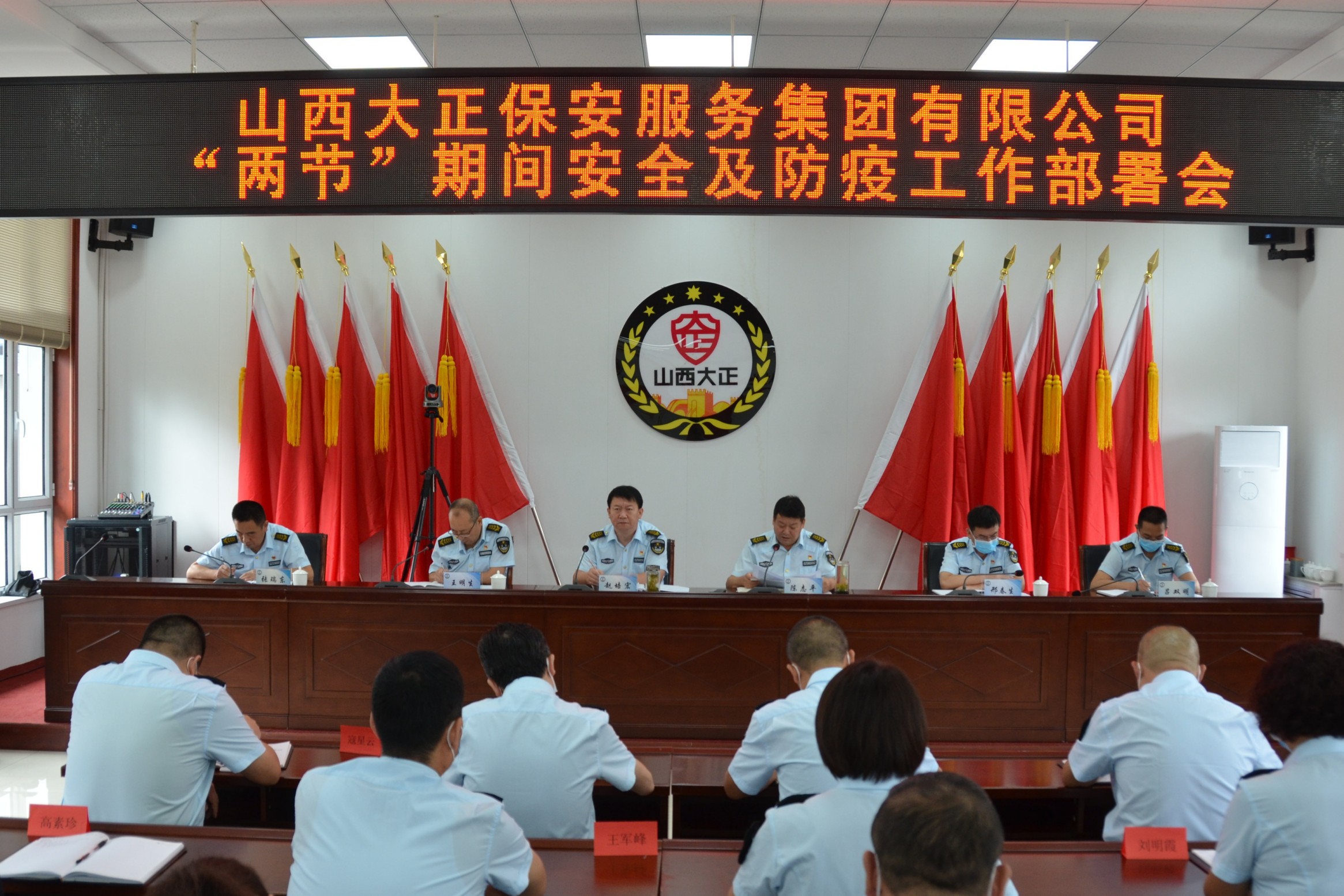 8月29日,山西大正保安服務集團有限公司“兩節(jié)”期間安全及防疫工作部署會在總部會議室召開。集團公司黨委副書記、總經理趙培宏,黨委委員王明生、邢春生,董事呂雙明、張瑞東出席會議,黨委副書記、副總經理陳志平主持會議。集團公司領導及機關各部、各子(分)公司管理人員60余人參會。
