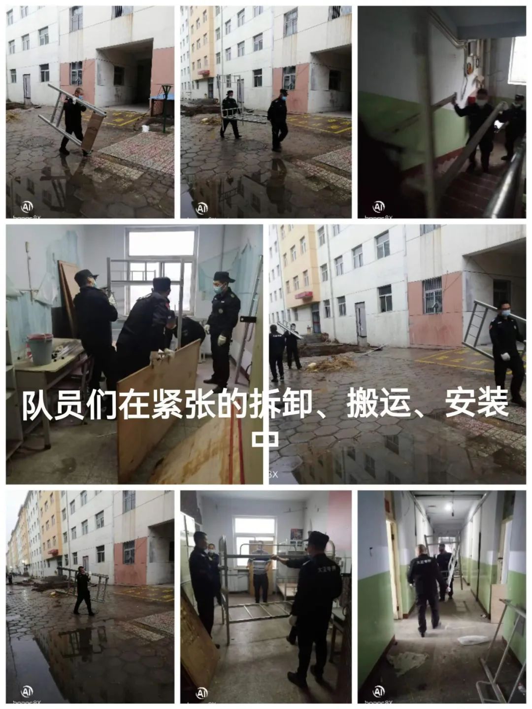 大正人在緊張有序的完成床鋪的拆卸、搬運(yùn)、 安裝