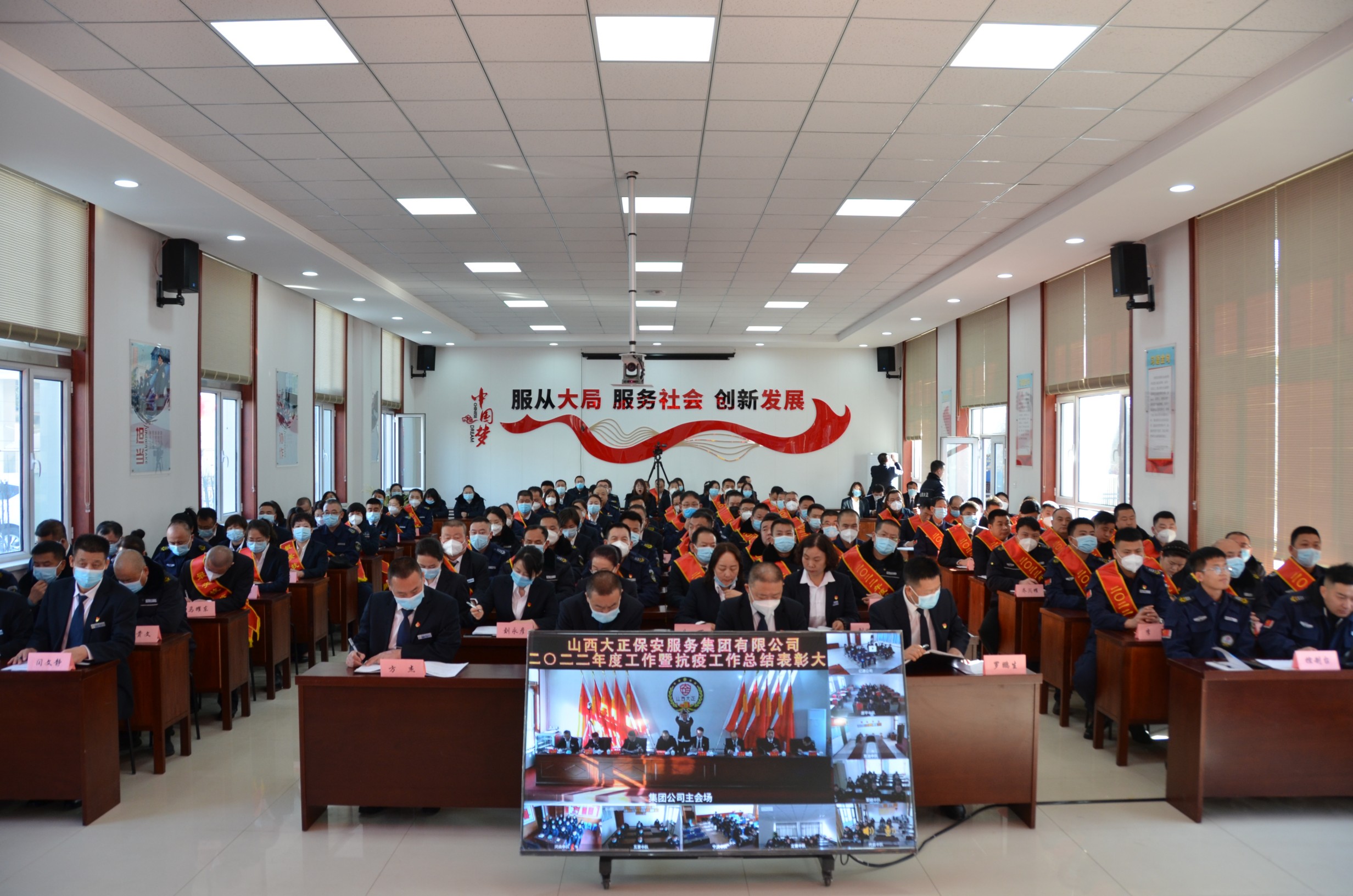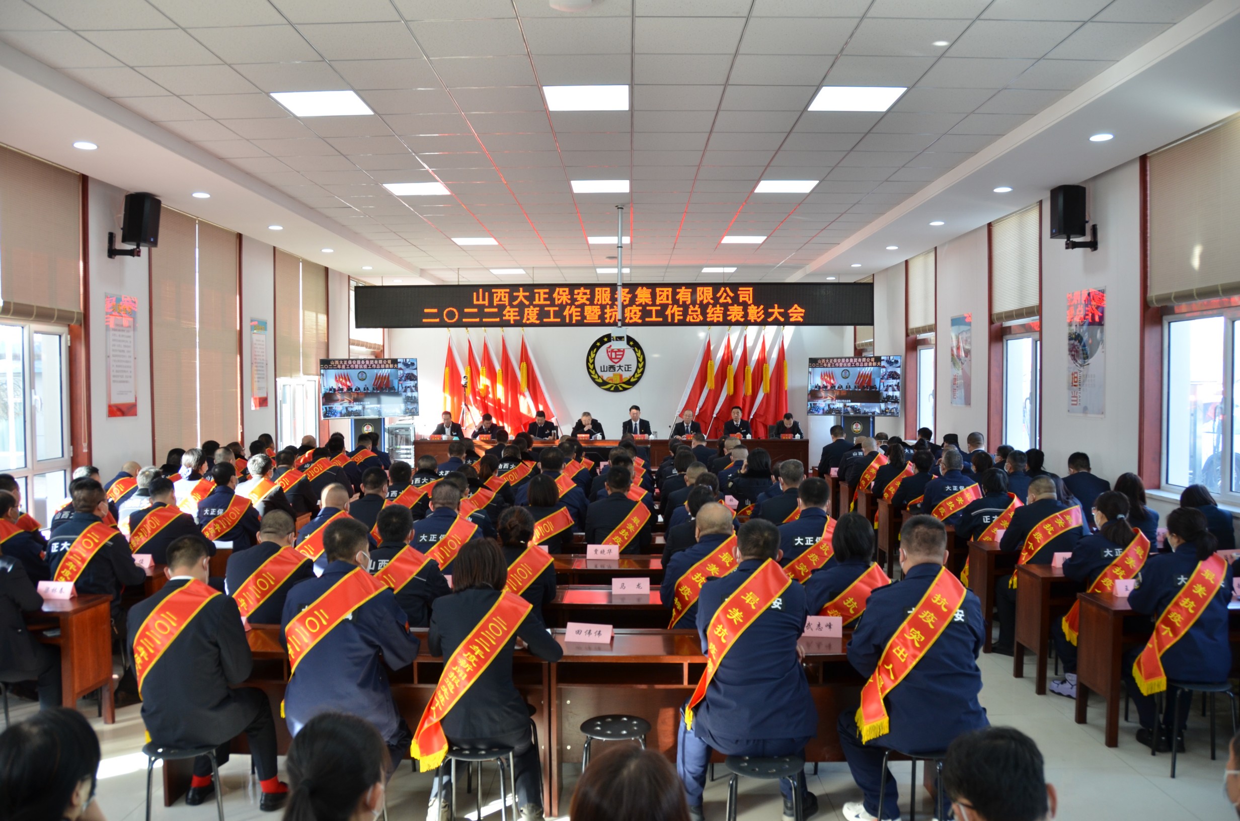 2023年2月1日上午10時在集團公司大會議室召開2022年度工作暨抗疫工作總結(jié)表彰大會。會議以視頻會議方式開至各縣、市基層中隊,設(shè)主會場1個、分會場21個,市工信局(國資委)黨委委員、副局長孫子義,產(chǎn)權(quán)科科長劉忠義出席會議。集團公司領(lǐng)導(dǎo)、機關(guān)各部門部長(負(fù)責(zé)人)、子(分)公司領(lǐng)導(dǎo)、受表彰先進集體、先進個人代表在主會場參會。集團機關(guān)其余人員、保安公司城區(qū)中隊長以上管理人員在中會議室參會;守押各中隊全體人員、保安駐各縣中隊負(fù)責(zé)人在各縣、市分會場參會。會議由集團公司黨委副書記、副總經(jīng)理陳志平主持。