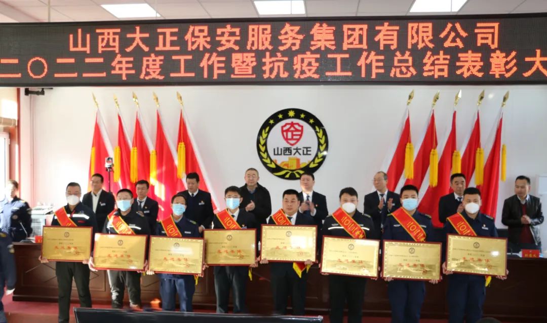 趙培宏在隨后的講話中指出:我們大正的英雄是奮戰(zhàn)在一線的戰(zhàn)士以及每一個奮斗的大正人。今天大會表彰的先進集體和個人都是員工隊伍中的優(yōu)秀代表。他們在各自的工作崗位用汗水澆灌收獲,用奮斗詮釋擔(dān)當(dāng),樹起了一面面爭先創(chuàng)優(yōu)的旗幟。2022年集團公司全體員工在公司黨委的領(lǐng)導(dǎo)下,搶抓機遇、迎難而上、共謀發(fā)展,取得了經(jīng)營業(yè)績和客戶滿意的雙重勝利。在攻堅克難中交出了一份優(yōu)異的成績單,營業(yè)總收入持續(xù)保持上升,2022年全年營業(yè)總收入18356萬元,實現(xiàn)利潤804萬元,實現(xiàn)稅金770萬元。對自主經(jīng)營條件成熟的2家子公司--山西大正億通保安安全技術(shù)有限公司、山西大正昇成刻章服務(wù)有限公司試行自主經(jīng)營、獨立核算,檔案管理中心、物流倉儲中心、與四川華飛合作培養(yǎng)航空專業(yè)人才等創(chuàng)新業(yè)務(wù)持續(xù)拓展,推動了山西大正集團行穩(wěn)致遠,基業(yè)長青。2022年我們擔(dān)當(dāng)國企使命,在抗疫攻堅中再建新功。面對忻府區(qū)多次突發(fā)疫情,公司成立工作領(lǐng)導(dǎo)小組,員工深入一線積極開展疫情防控工作,積極參與師院東校區(qū)隔離點疫情防控工作,山西大正人用雙手傳遞餐食、用肩膀扛起物資、用腳步丈量責(zé)任、用行動踐行初心。圓滿完成了每一項艱巨繁重的工作任務(wù),為決戰(zhàn)決勝疫情防控阻擊戰(zhàn)作出了重要貢獻,并得到了市政府的高度肯定和社會各界一致好評。