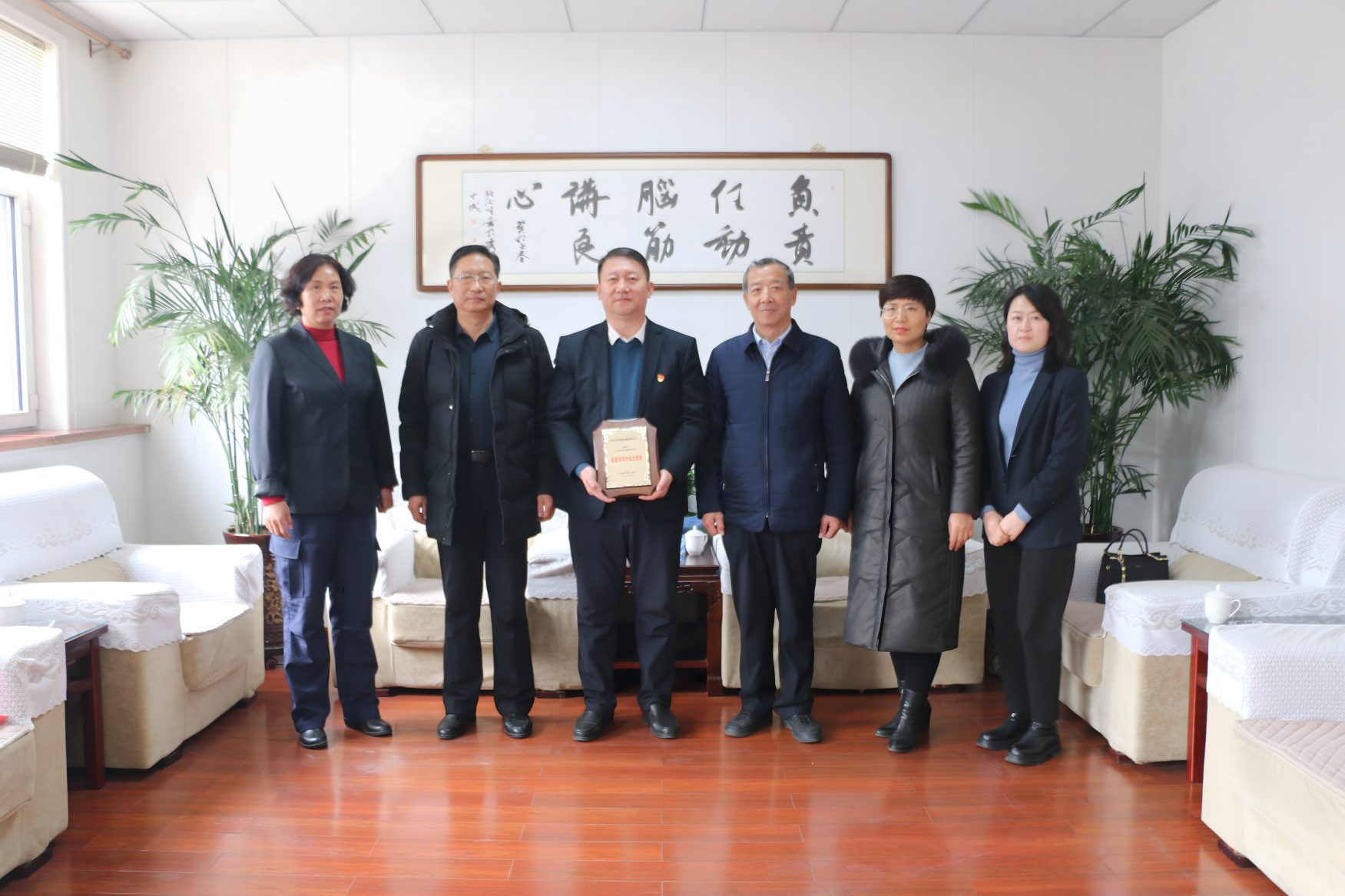1月30日,受忻州市退役軍人事務(wù)局黨組書記、局長(zhǎng)張耀民委托,忻州市退役軍人事務(wù)局黨組成員、副局長(zhǎng)張培觀、四級(jí)調(diào)研員王樹康、三科科長(zhǎng)張承香蒞臨公司,為集團(tuán)公司送上由山西省退役軍人事務(wù)廳頒發(fā)的“2023年度山西退役軍人就業(yè)合作企業(yè)光榮榜”獎(jiǎng)牌。
