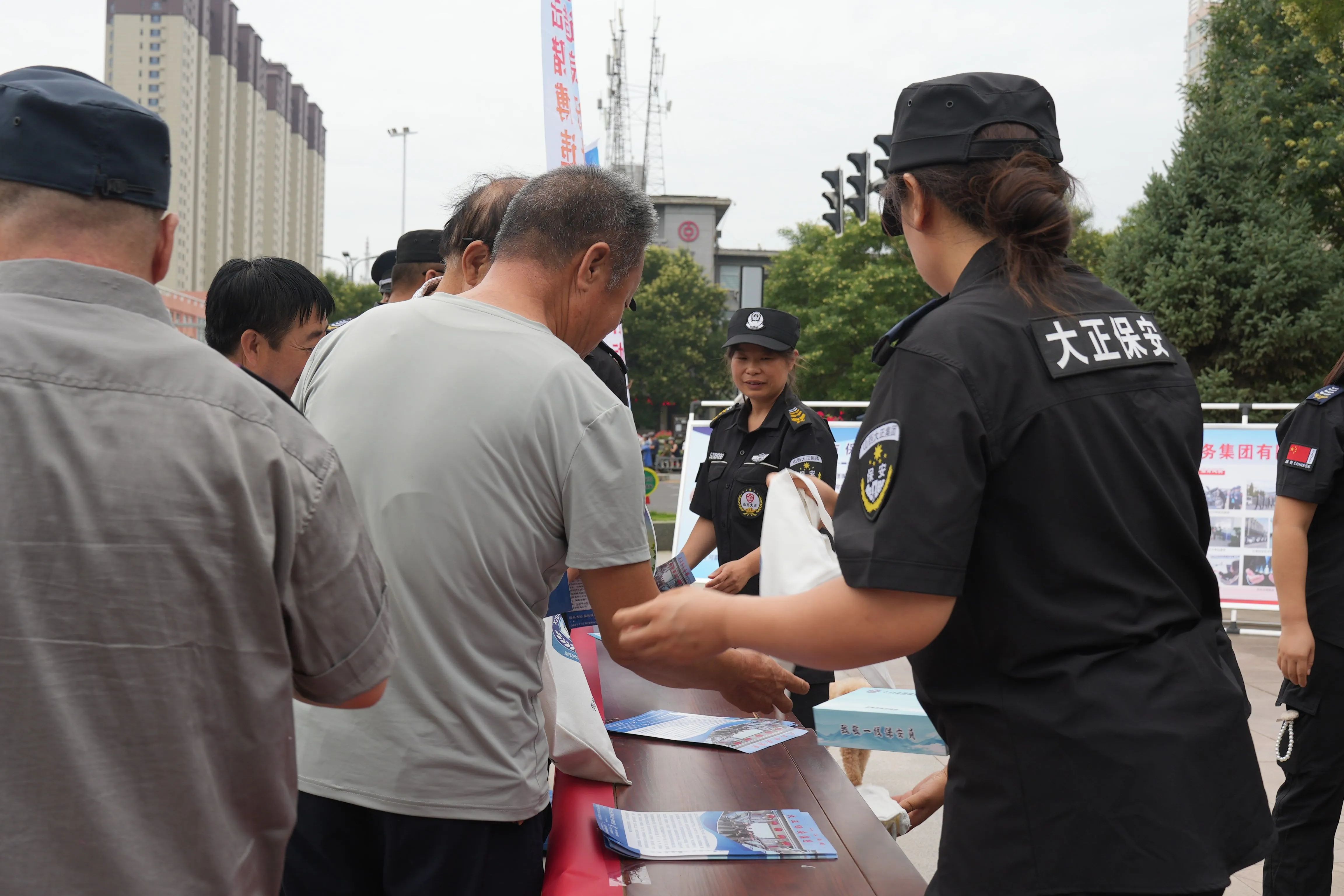 與此同時(shí),山西大正保安服務(wù)集團(tuán)有限公司也積極投身到宣傳活動(dòng)中來(lái)。精心制作了12塊宣傳展板,內(nèi)容涵蓋保安行業(yè)的職責(zé)使命、服務(wù)范圍、優(yōu)秀事跡等方面,生動(dòng)展示了保安隊(duì)伍的風(fēng)采和貢獻(xiàn)。保安隊(duì)員們更是主動(dòng)與市民互動(dòng),通過現(xiàn)場(chǎng)講解、模擬演示等方式,讓市民更加直觀地了解保安工作的重要性和必要性。