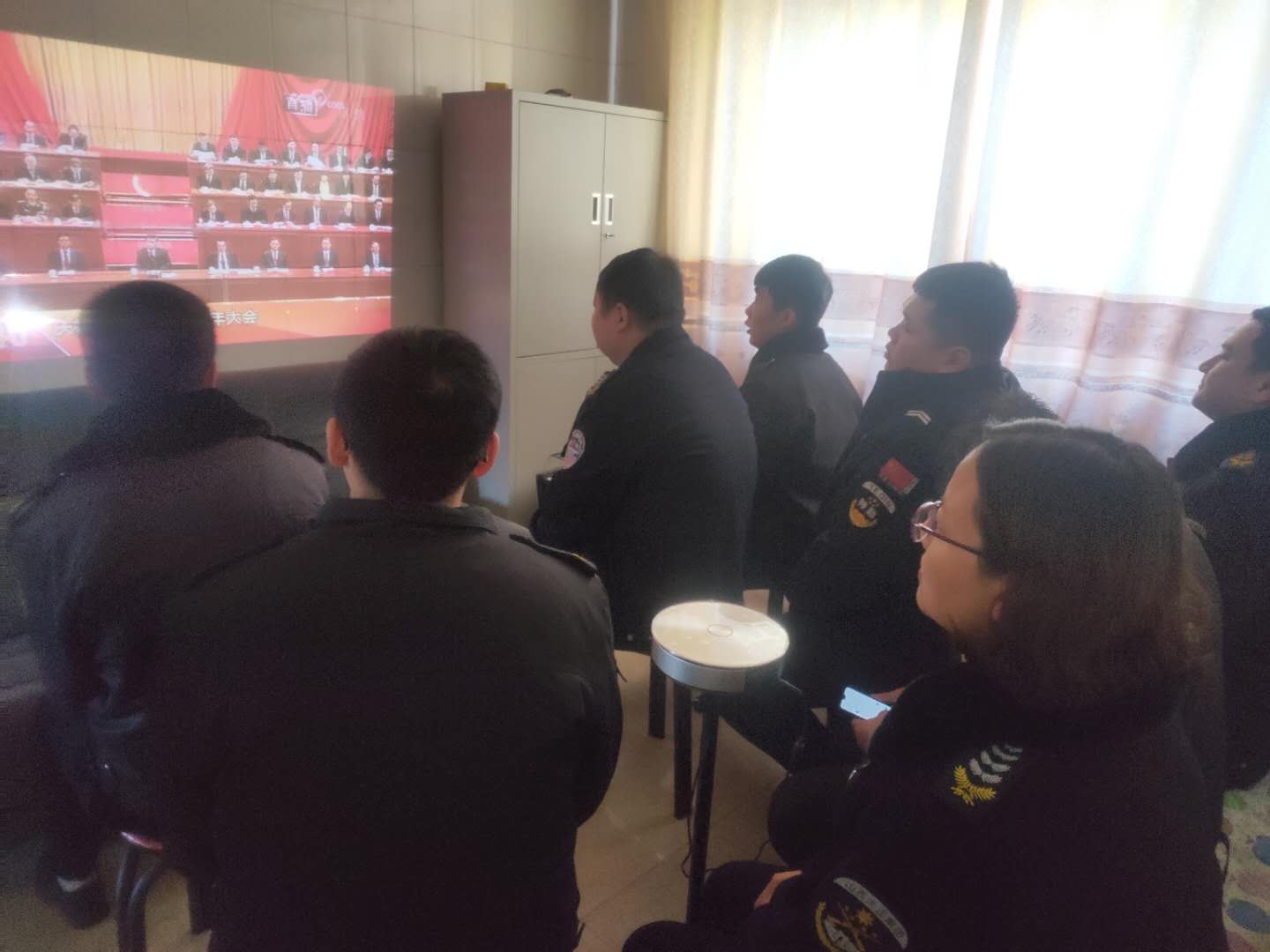 (守押靜樂中隊組織收聽、收看大會)