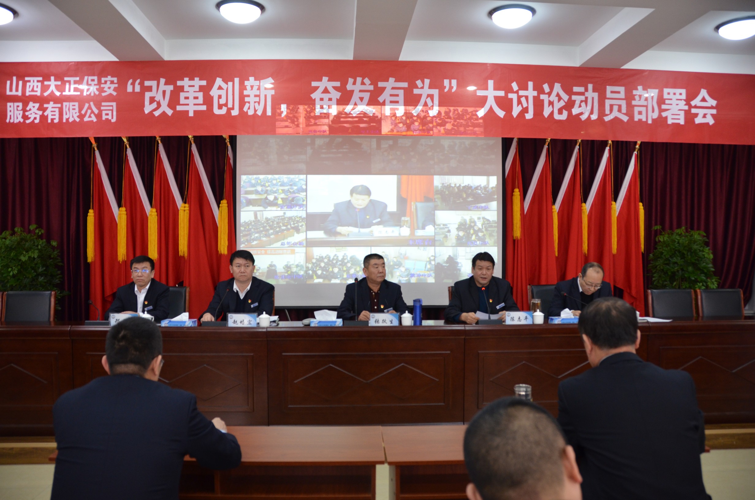 近日,山西大正保安服務(wù)有限公司召開“改革創(chuàng)新、奮發(fā)有為”大討論動員部署會,會議以視頻的形式召開至基層各單位。公司黨政領(lǐng)導班子、機關(guān)各中心(室)、基層各單位全體員工參加會議。黨委副書記、副總經(jīng)理陳志平主持會議。
