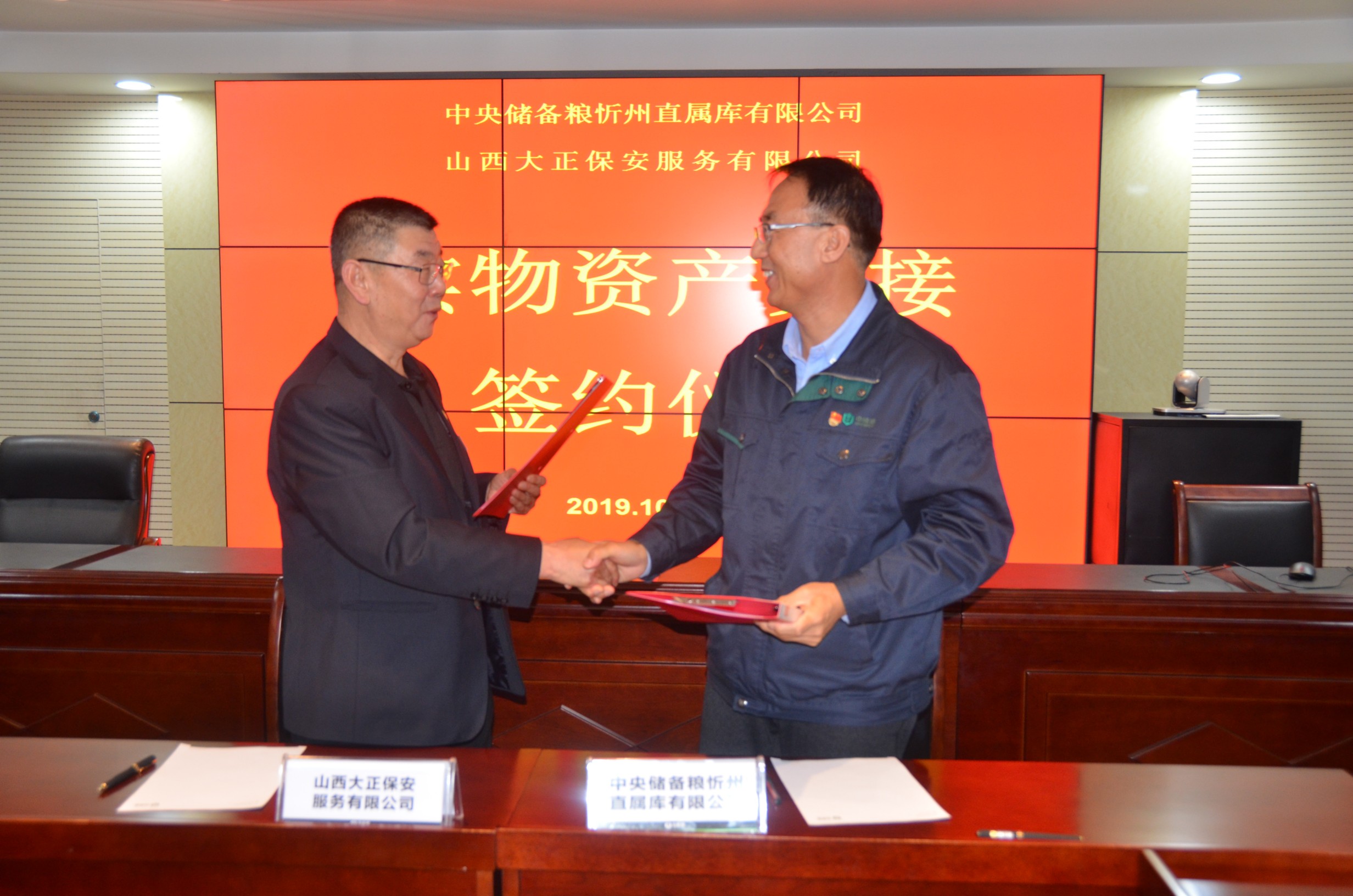 10月31日,山西大正保安服務(wù)(集團(tuán))有限公司與中儲(chǔ)糧忻州直屬庫有限公司在中儲(chǔ)糧忻州直屬庫有限公司會(huì)議室簽署資產(chǎn)交接協(xié)議,正式交接中儲(chǔ)糧忻州直屬庫有限公司轉(zhuǎn)讓的原紅鑫淀粉廠項(xiàng)目土地、建筑等資產(chǎn)。