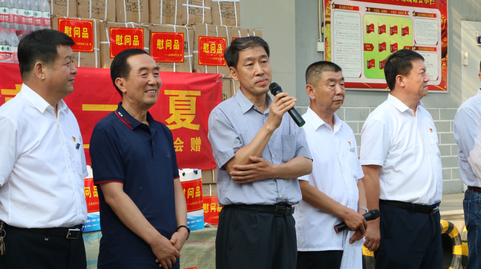 7月27日下午,省、市兩級總工會領(lǐng)導(dǎo)蒞臨我公司舉行“夏季送清涼”慰問活動,為堅(jiān)守在一線的職工朋友們送上夏日的關(guān)懷與問候,同時為職工朋友們贈送一批防暑用品和對公司困難職工進(jìn)行慰問。省總工會黨組成員、副主席張亞琳;省總工會經(jīng)濟(jì)技術(shù)部副部長高偉;市人大副主任、市總工會主席魏廣才;市總組黨組書記、常務(wù)副主席王書鴻;市總工會副主席曲文斌;市總工會副主席左文蕾;公司黨政班子成員參加此次活動;顒佑缮轿鞔笳0卜⻊(wù)有限公司黨委書記、董事長張躍生主持。
