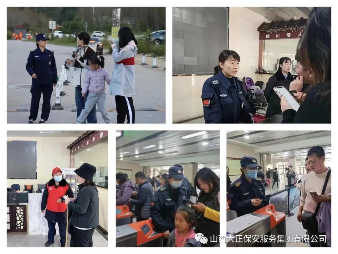 大正保安集團(tuán)公司的女保安隊(duì)員們,正是通過她們不懈的努力和辛勤的付出,讓全國(guó)各地的游客度過一個(gè)快樂、祥和的“兩節(jié)”,用她們的勇敢和堅(jiān)韌,應(yīng)對(duì)著各種惡劣的氣候和復(fù)雜的勤務(wù),把五臺(tái)山景區(qū)變?yōu)橐粋(gè)平安、有序、快樂的旅游勝地。此次勤務(wù)時(shí)間長(zhǎng),壓力大,但她們用微笑服務(wù)保持始終。無論是引導(dǎo)游客,檢查安全設(shè)施,還是處理游客投訴,她們總能以親切和友好的態(tài)度面對(duì)每一個(gè)人。她們默默地工作著,時(shí)刻保持專業(yè)素養(yǎng)和良好形象,為游客提供熱情細(xì)致的服務(wù)。