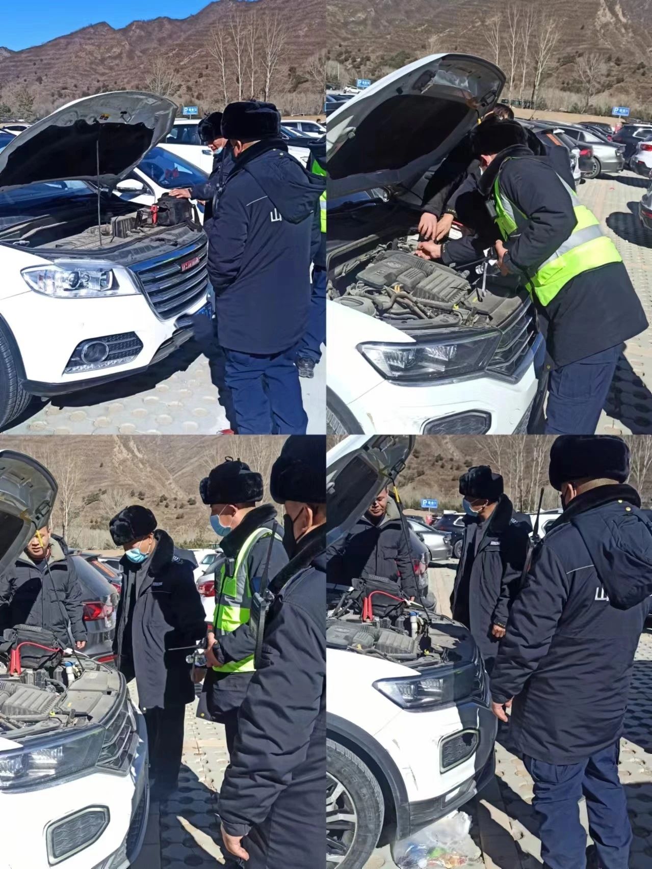 在這樣一個人流密集的地方執(zhí)勤,意味著要時刻保持高度的警覺和熱情的服務(wù)。執(zhí)勤期間,隊員在巡視停車場時,發(fā)現(xiàn)了一輛私家車主焦急地圍著自己的車輛打轉(zhuǎn)。原來,這輛車因長時間停放導(dǎo)致電瓶虧電,無法啟動。執(zhí)勤隊員立即上前詢問情況,并利用隨車攜帶的跳線,幫助游客成功搭電點火,解決了游客的燃眉之急