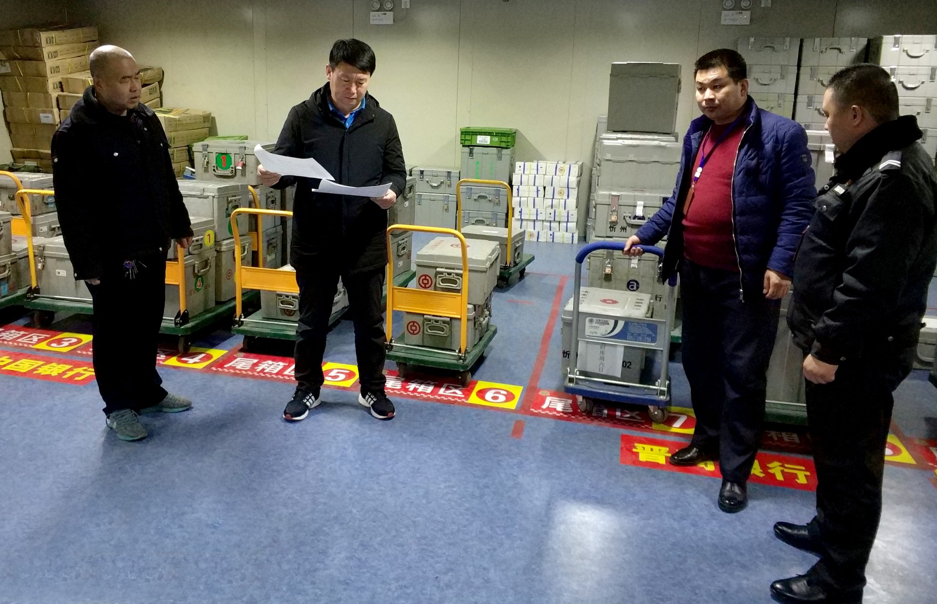 2017年12月31日晚,在副總經(jīng)理趙培宏帶領(lǐng)下,總經(jīng)理助理寇星云、勤務(wù)指揮中心楊貴文、保衛(wèi)部張龍以及一公司相關(guān)負(fù)責(zé)人對(duì)城區(qū)中心庫(kù)中隊(duì)進(jìn)行了2017年年終尾箱庫(kù)清查工作。