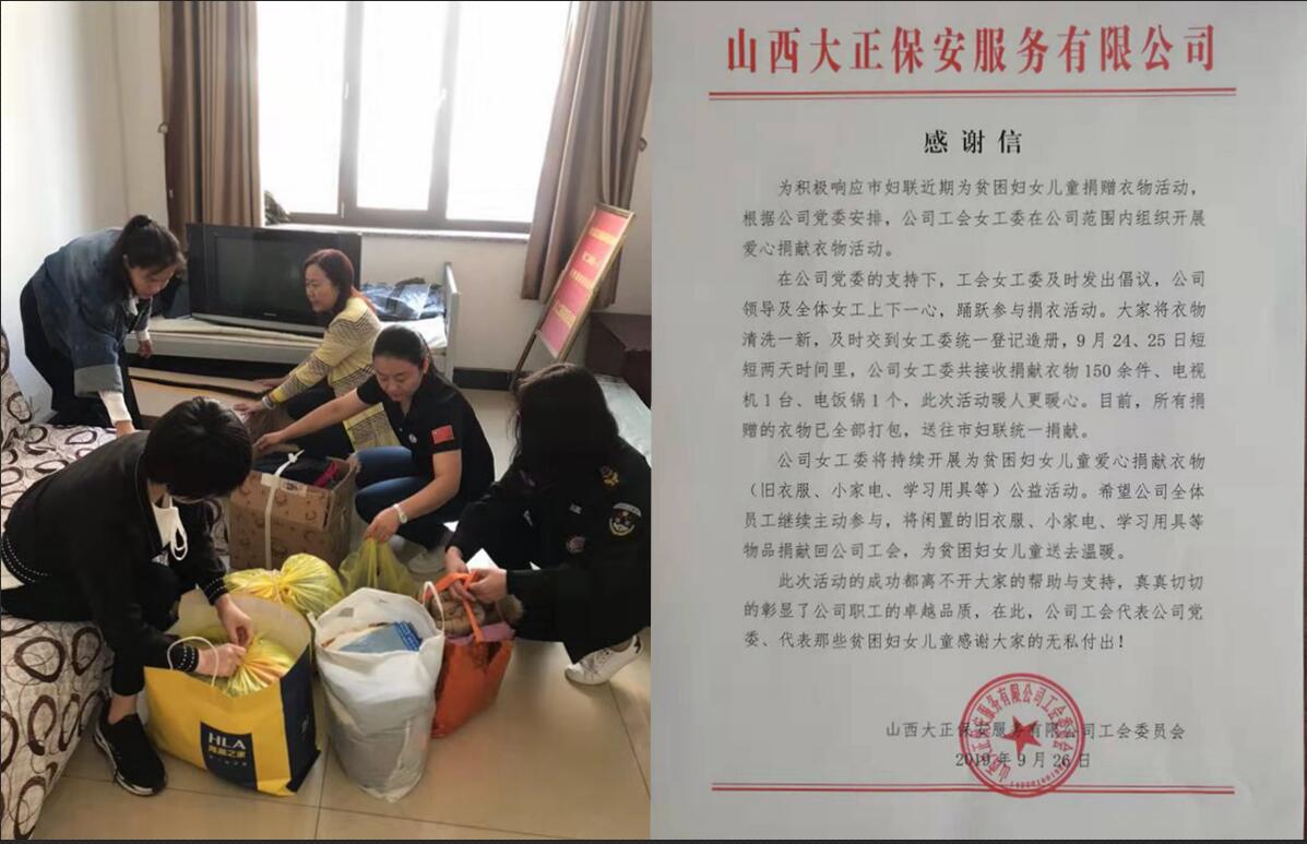 目前,在公司女工共同幫助下,所有捐贈的衣物已全部打包,送往市婦聯(lián)統(tǒng)一捐獻(xiàn)。