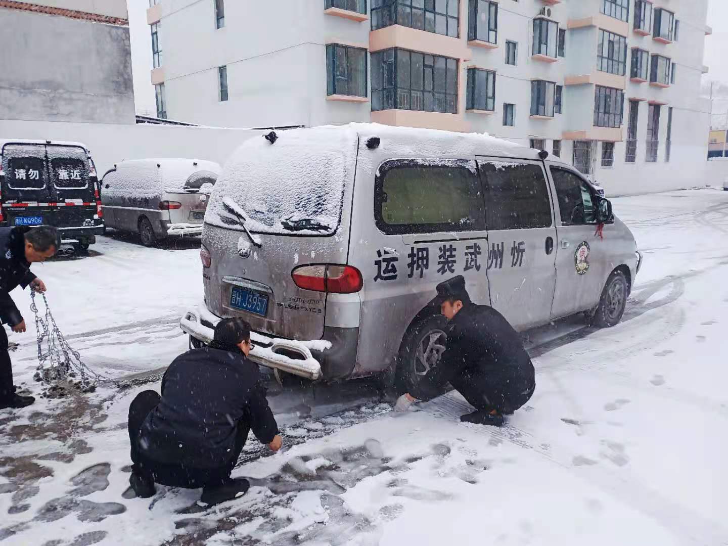由于降雪天氣給運鈔車安全行駛導致安全隱患,中隊每日關注天氣情況有效應對,及時安排各車組提前做好出車前車輛安全檢查以及安裝防滑鏈,同時囑咐要注意車速,確保行車安全。安全無小事,每一次往返任務都牽動著公司領導的心。由于天氣惡劣,車隊出發(fā)后,中隊管理人員一步不離堅守在崗位上,和各車組隨時保持著聯(lián)系,有時隊長、副隊長親自跟車,以便及時了解各車組途中的實際情況。