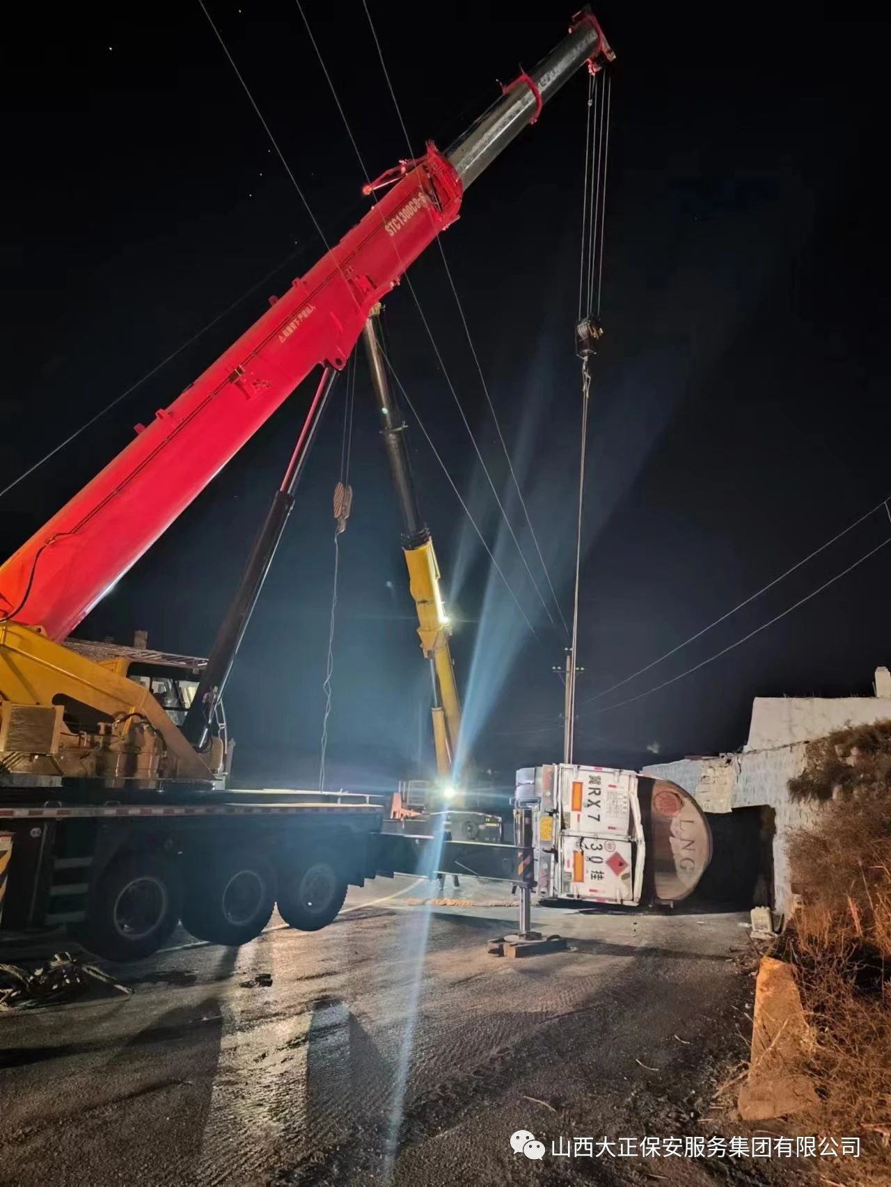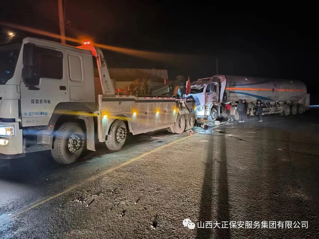 2023年11月23日晚8時,山西大正保安集團公司保德縣守押中隊應急救援大隊接到應急局出勤指令,棗林坡有滿載液化氣罐車發(fā)生側翻,需要派出應急人員控制現場,并協助處理側翻事故。應急救援大隊接到命令后,派出應急車輛兩部及應急人員5人趕赴現場,協助交警對現場路段進行管控,保證周圍車輛人員安全。