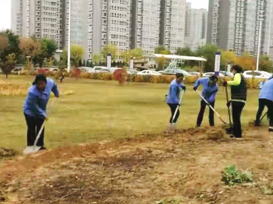 10月下旬始,趁著天氣還比較暖和,以常態(tài)保潔為主,做好日常工作,同時(shí)進(jìn)行修剪草坪、整理樹(shù)坑、清理花壇、處理盆栽殘花等,截至目前,共計(jì)打理草坪8700平方米,整理樹(shù)坑70個(gè),清理花壇三處,處理殘花7000小盆。另外,冬季供暖屬于重頭戲,項(xiàng)目部組織員工仔細(xì)排查管道跑水、漏水現(xiàn)象,保證供暖注水的正常,保障了服務(wù)單位的供暖質(zhì)量。
